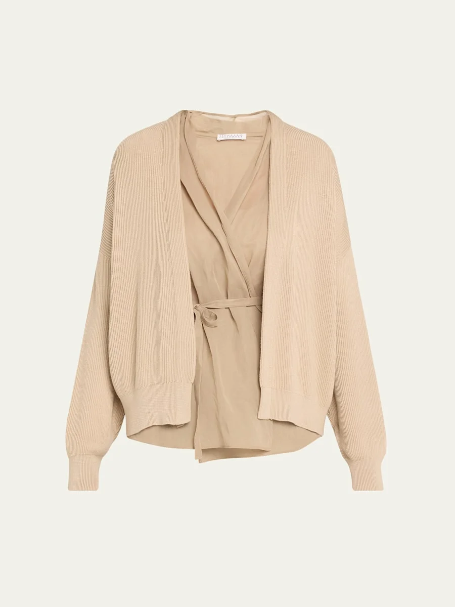 Brunello Cucinelli organza layered golf cardigan Open front Long sleeves Relaxed fit Tie closure Cotton/nylon/polyamide Dry clean Made in Italy Model is 5'10"/177cm. Online Inquiries: BGS21_BASAF| Store Inquiries: #4915301
