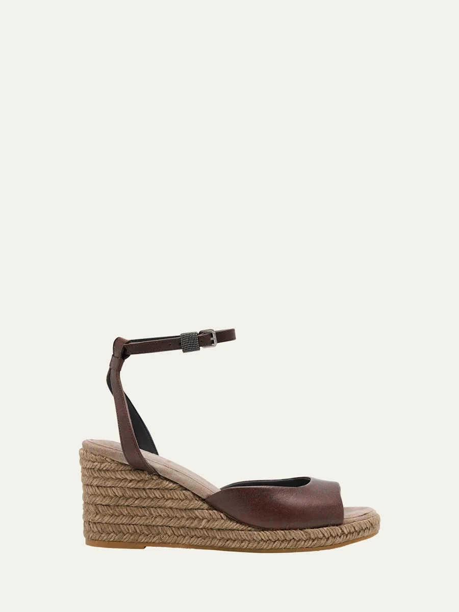 Leather Monili Buckle Wedge Espadrilles