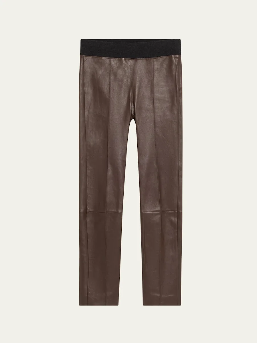 Brunello Cucinelli lamb leather stretch leggings with front seams Elasticized waistband Cropped at the ankle High rise Skinny legs Stepin style Leather/cashmere/elastane Lining: Polyester/acetate Made in Italy