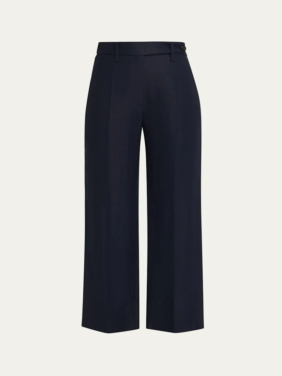 Linen Twill Wide-Leg Crop Cigarette Pants