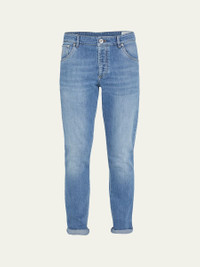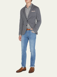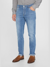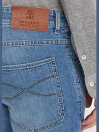 Brunello Cucinelli pants in non-stretch denim Five-pocket style Flat front Slim, straight legs Cotton Made in Italy Model is 6'1"/185cm. Online Inquiries: BGS21_NBPZX| Store Inquiries: #4306041