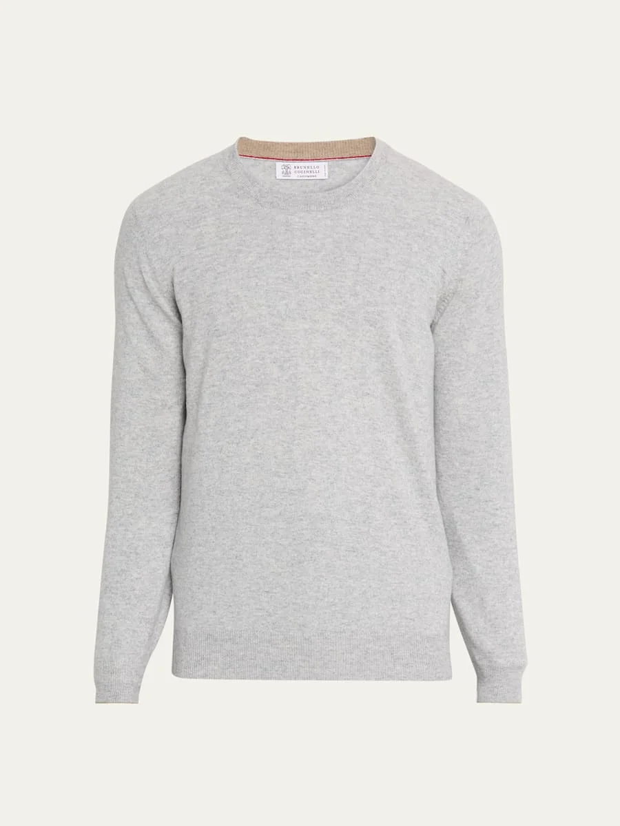 Brunello Cucinelli solid sweater in cashmere revealing a soft and sumptuous handfeel Crew neckline Long sleeves Ribbed cuffs and hem Classic fit Pullover style Cashmere Unlined Dry clean Made in Italy Online Inquiries: BGS21_NDGKM| Store Inquiries: #5039560