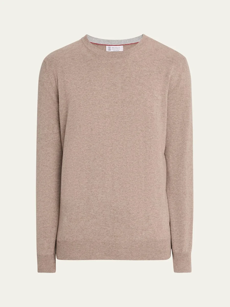 Brunello Cucinelli solid sweater in cashmere revealing a soft and sumptuous handfeel Crew neckline Long sleeves Ribbed cuffs and hem Classic fit Pullover style Cashmere Unlined Dry clean Made in Italy Online Inquiries: BGS21_NDGKM| Store Inquiries: #5039560