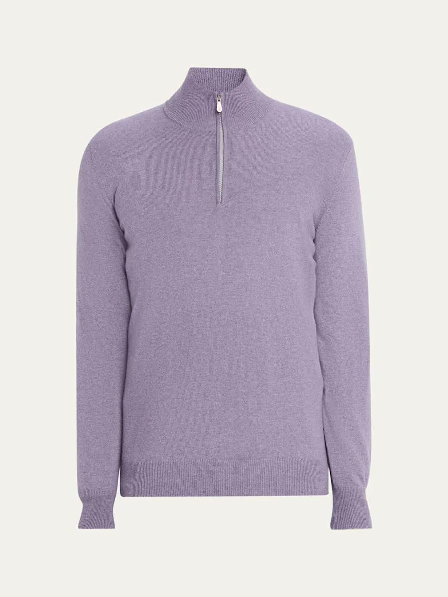 Brunello Cucinelli pullover sweater in ultrasoft cashmere Ribbed mock neck Quarterzip neckline Long sleeves Ribbed cuffs and hem Pullover style Cashmere Made in Italy