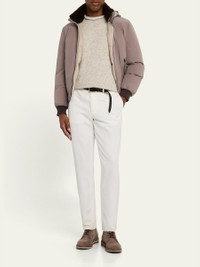 Brunello Cucinelli nylon jacket enhanced with a bleached and dyed shearling (Italy) collar Detachable drawstring hood Long sleeves with rib-knit cuffs Zip pockets Classic fit Two-way zip-front Nylon/polyamide/elastane Dry clean Made in Italy Online Inquiries: BGS21_NDNN8| Store Inquiries: #5039571