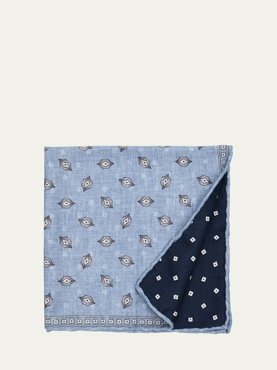 Men's Geometric Leaf-Print Silk Pocket Square