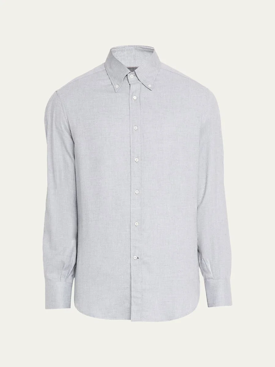 Brunello Cucinelli sport shirt in a comfortable chevron woven cotton blend Genuine motherofpearl buttons Buttondown collar Button placket Long sleeves Doublebutton cuffs Pleated back yoke Curved hem Cotton/lyocell Lining: Cotton Dry clean, machine wash line dry Made in Italy