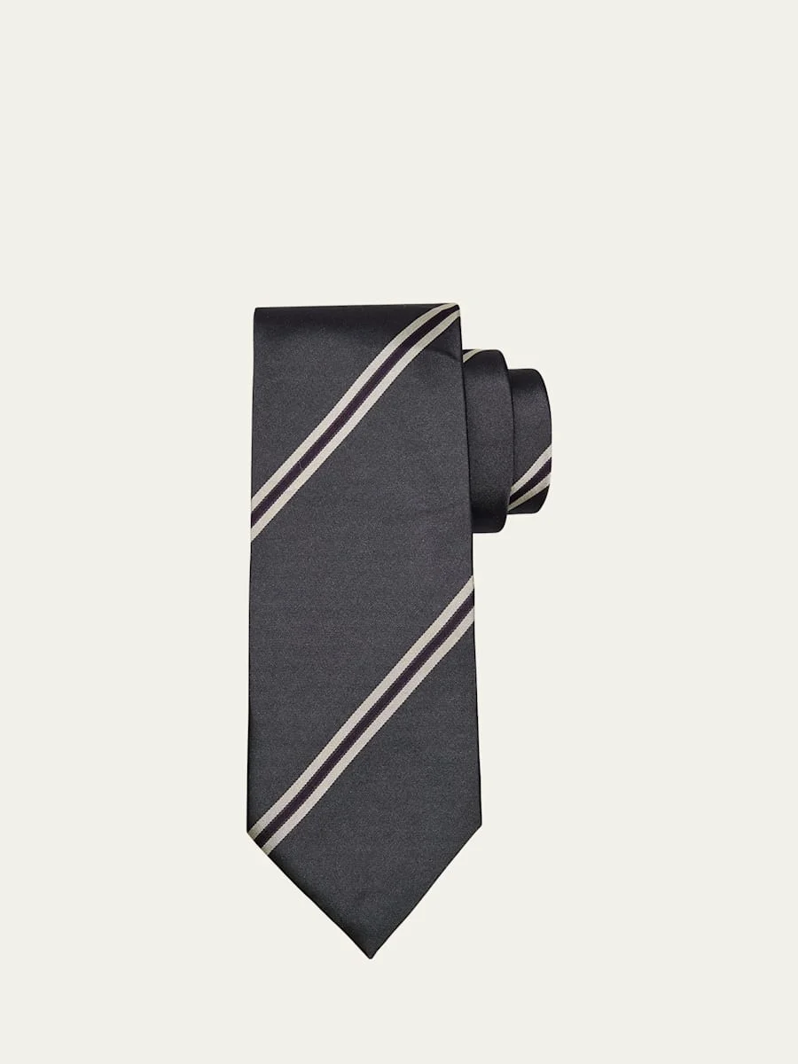 Brunello Cucinelli neck tie with a striped motif May be styled multiple ways Approx. 57.9"L x 3"W Silk Hand wash or dry clean Made in Italy