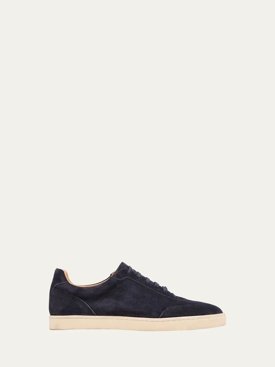 Brunello Cucinelli low-top sneakers in supple suede Flat heel Round T-toe Lace-up vamp Backstay with foiled logo emblem Rubber outsole Made in Italy Online Inquiries: BGS21_NBNTU| Store Inquiries: #4681589