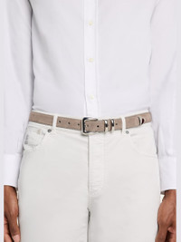 Brunello Cucinelli suede belt exemplifies the brand's artisanal craftsmanship with its handcrafted design Silvertone hardware Adjustable fit Buckle closure Suede Made in Italy Online Inquiries: BGS21_NDQ0P| Store Inquiries: #5063846