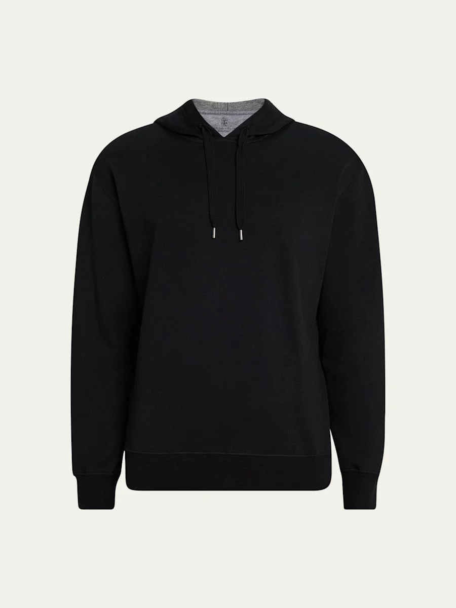 Brunello Cucinelli sweatshirt in a soft cotton blend for a sumptuous handfeel Hooded drawstring neckline Long sleeves Ribbed cuffs and hem Pullover style Cotton/nylon/cashmere Lining: Cotton/elastane/silk Dry clean, machine wash line dry Made in Italy