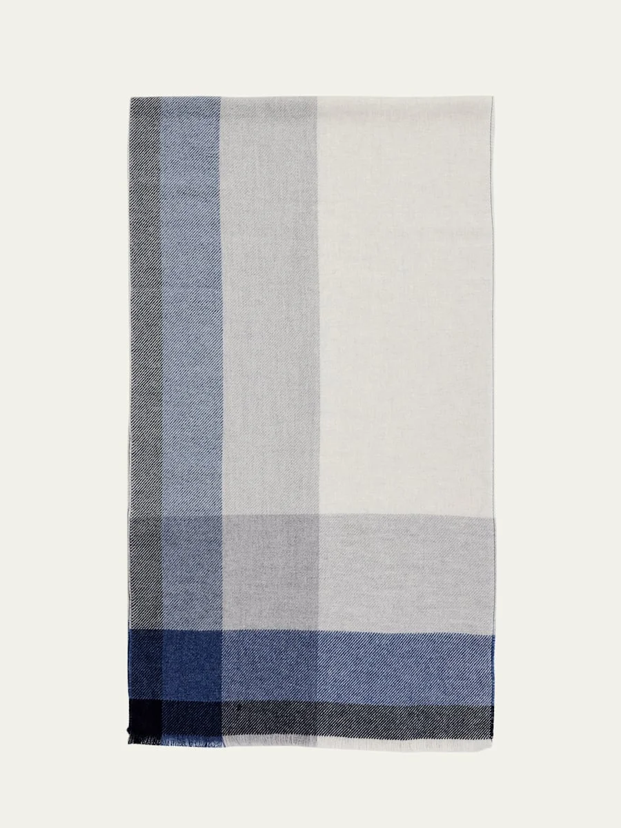 Men's Uneven Plaid Wool-Cashmere Scarf