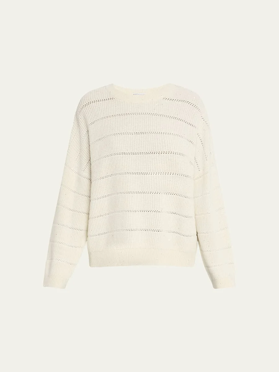 Brunello Cucinelli mohairblend sweater with openwork insets Crew neckline Dropped shoulders Long sleeves Relaxed fit Hem falls to the hip Pullover style Cashmere/wool/nylon/polyamide Made in Italy