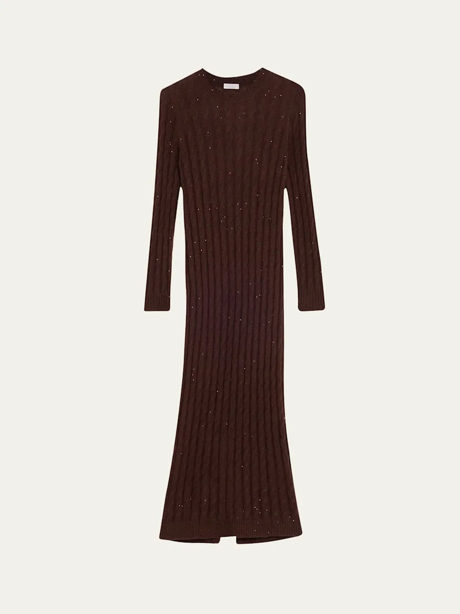 Mohair Pailette Cable Knit Maxi Sweater Dress