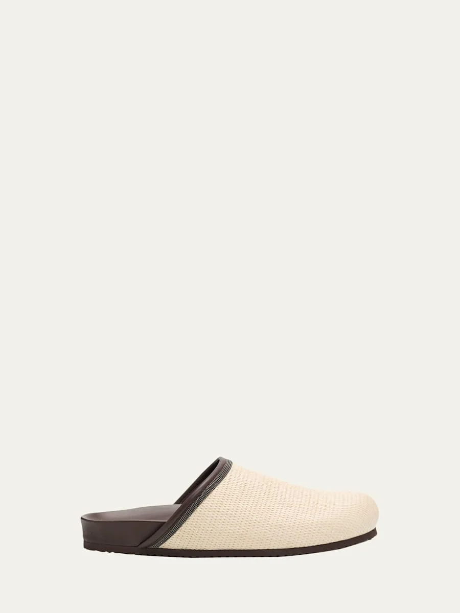 These mules by Brunello Cucinelli are crafted with a smooth leather lining, raffia upper, and signature monili trim detailing Flat heel Round toe Easy slide style Made in Italy