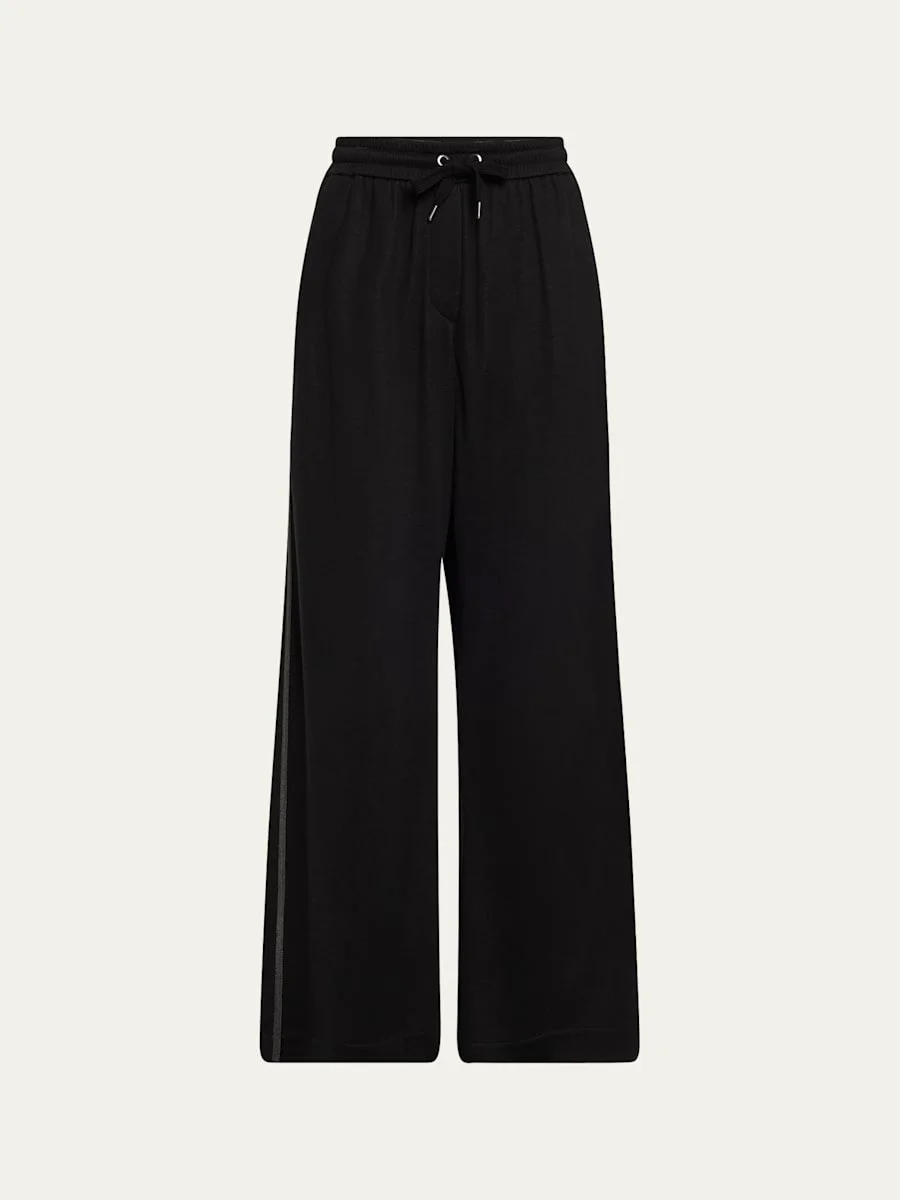 Monili Side-Stripe Cotton Silk Wide-Leg Pants