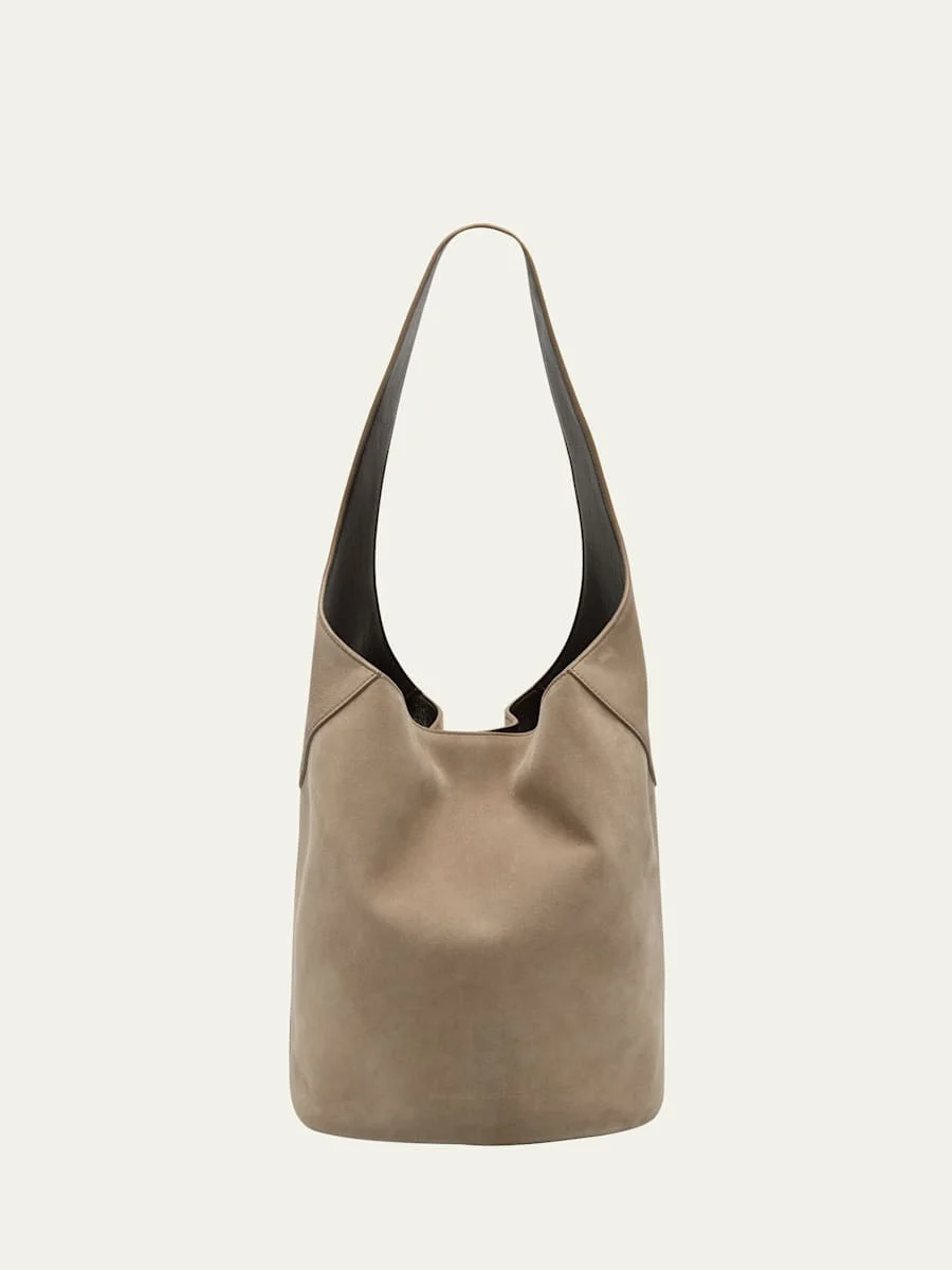 Brunello Cucinelli structured shoulder bag in suede Shoulder strap with monili trim Open top with magnetic closure Interior, leashed zip pouch bag Approx. 11.4"H x 11.6"W x 8.4"D Made in Italy Online Inquiries: BGS21_V6GYD| Store Inquiries: #4990205