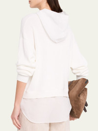 Cotton organza and English rib knit faux-layered sweatshirt with detachable hood and monili