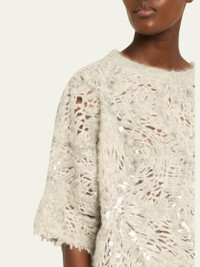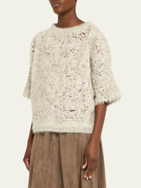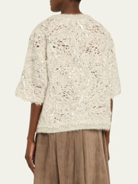 Pailette Mohair-Wool Short-Sleeve Sweater