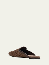 Brunello Cucinelli woven raffia loafer mules with beaded monili trim Flat heel Round toe Notched vamp Easy slide style Leather outsole Made in Italy Online Inquiries: BGS21_X6RPK| Store Inquiries: #4915598
