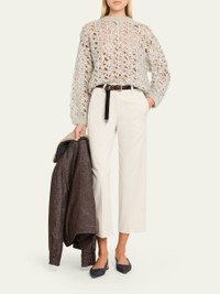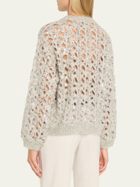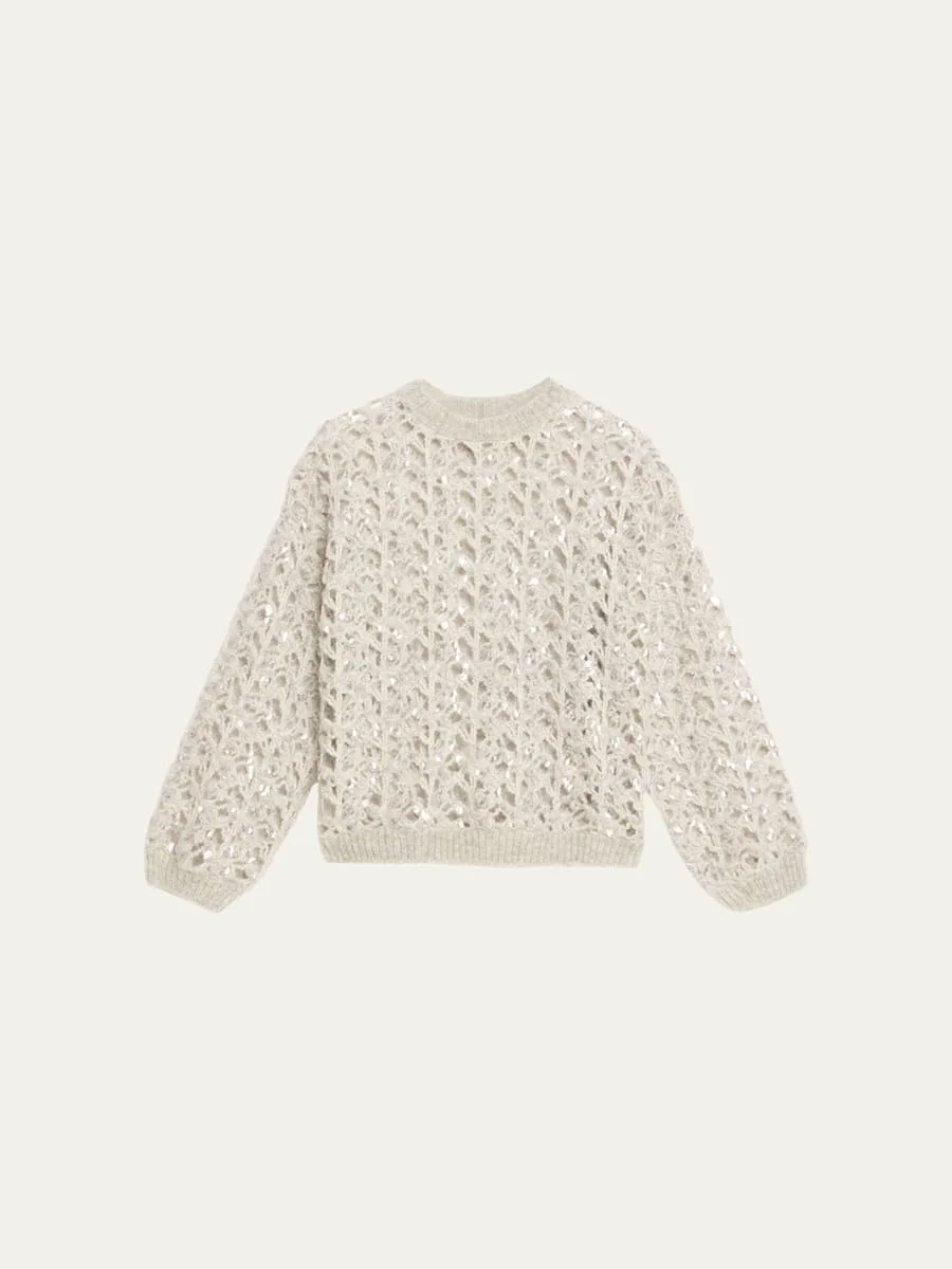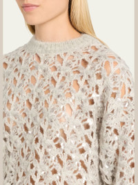 Sequined Mohair-Wool Open-Knit Crewneck Sweater