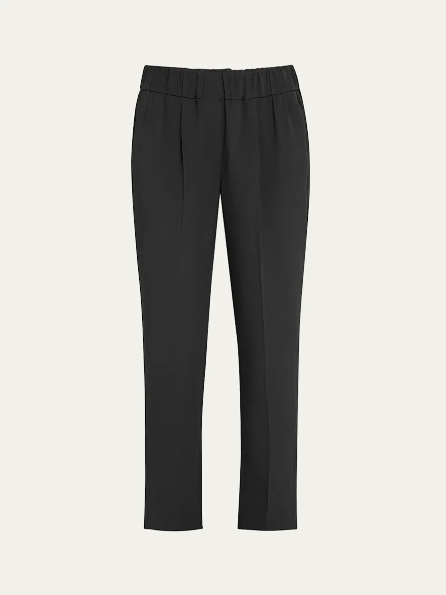 Silk Crepe Cady Straight-leg Ankle Pull-On Pants