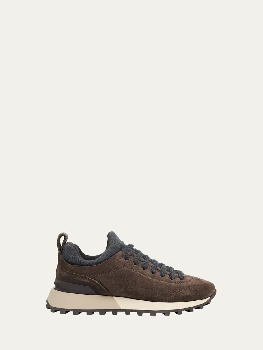 Suede Flannel Microsole Runner Sneakers with Monili Pull Tab