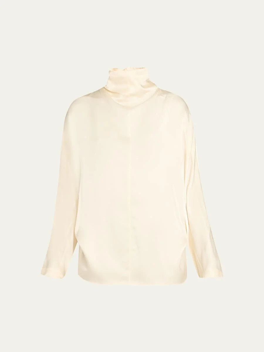 Turtleneck Fluid Silk Long-Sleeve Blouse