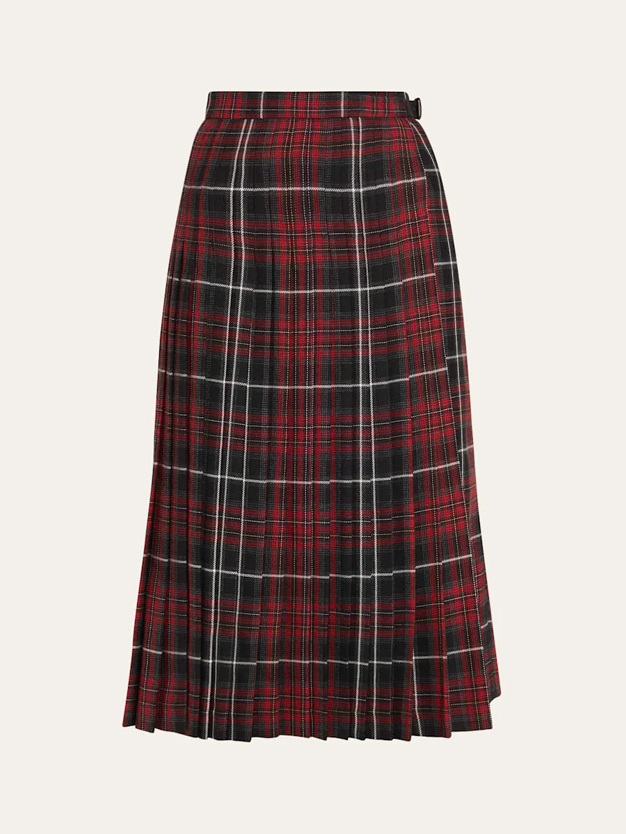 Embrace timeless sophistication with this Burberry skirt crafted from premium wool with a distinctive check pattern elevated by adjustable calfskin leather buckles, offering a contemporary twist on classic tailoring. High waist Hem falls below the knee A-line silhouette Buckle side closure Polyester/wool Made in Poland Online Inquiries: BGS21_BB09C| Store Inquiries: #5372893