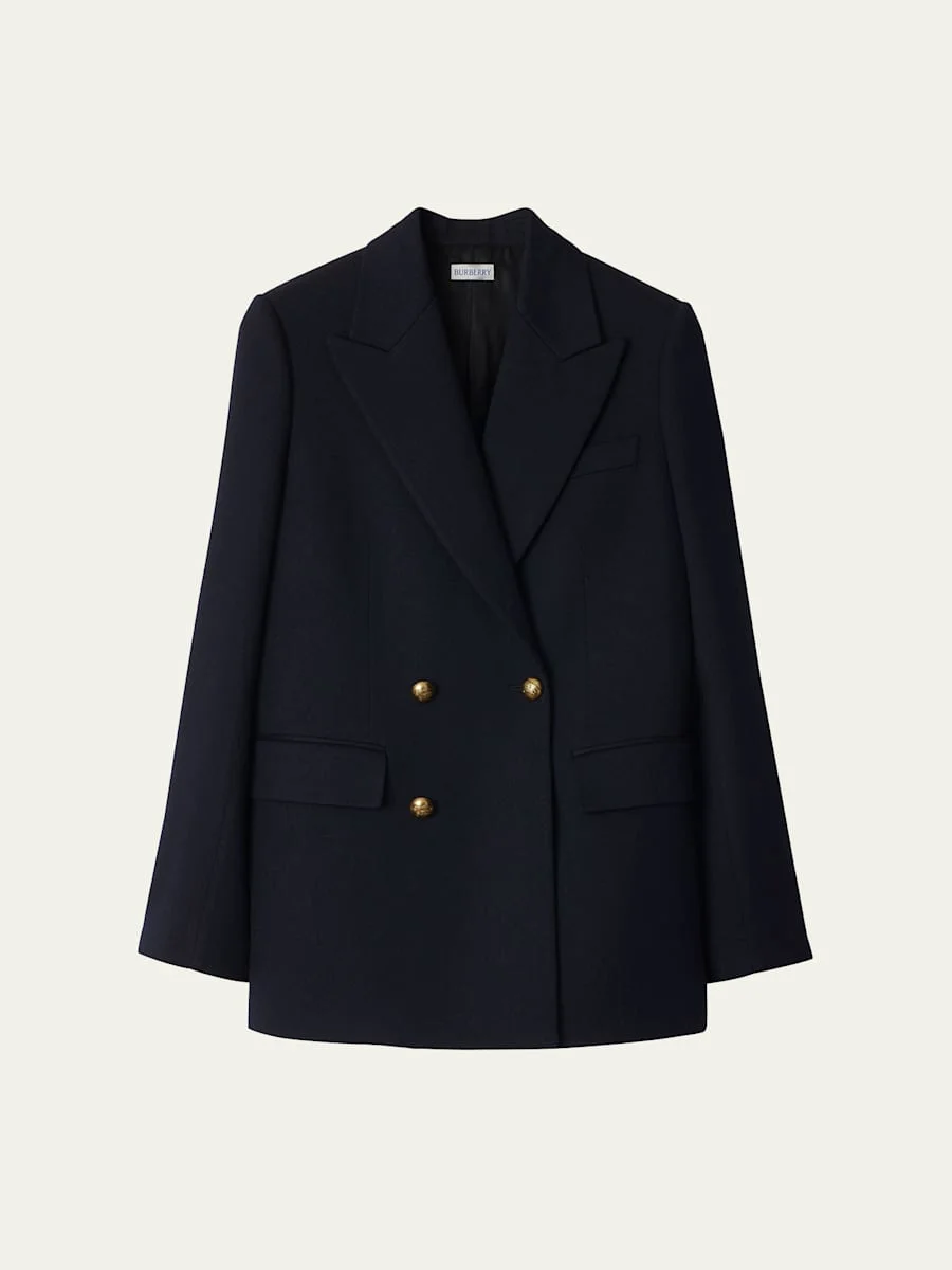 Burberry double-breasted jacket Peak lapels Long sleeves Chest pocket; waist flap pockets Straight fit Wool Cupro lining Dry clean Made in Italy Online Inquiries: BGS21_B9NPY| Store Inquiries: #4927344