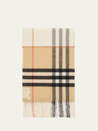 Burberry's ultrasoft scarf is jacquardwoven with the brand's Equestrian Knight Design motif and iconic check in contrasting hues. Fringed edges Approx. 66"L x 12.0"W Cashmere Professional cleaning recommended Imported