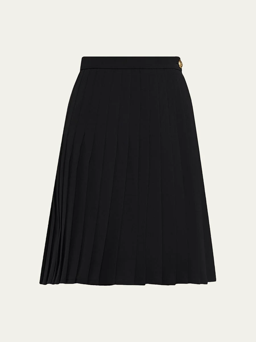 Burberry "Eleonora" skirt is finished with pleating and a signature EKD engraved goldtone button High waist Knee length Button side waist closure Polyester/wool/horn Lining: Viscose Made in Poland