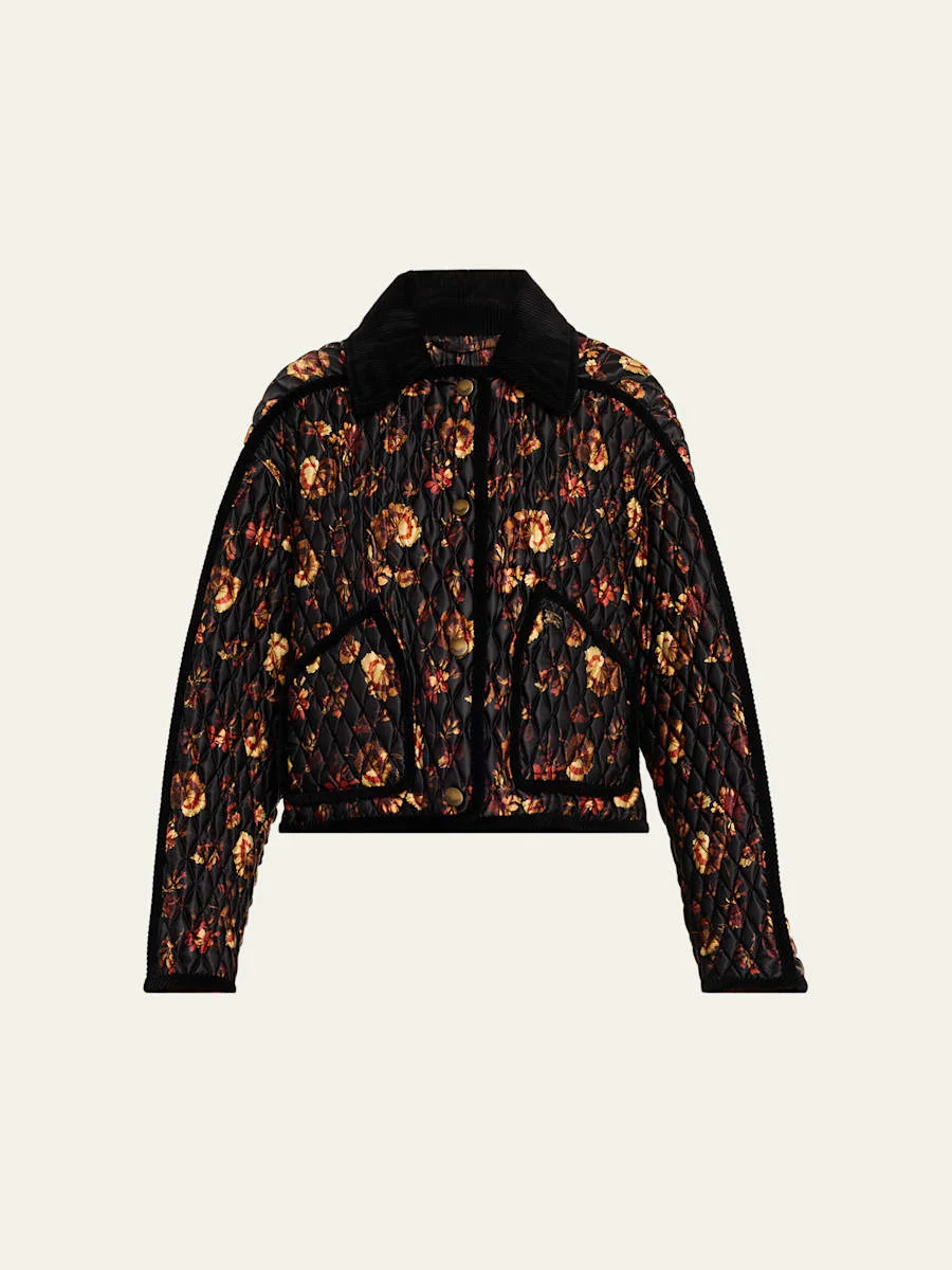 Floriston Corduroy-Trim Quilted Barn Jacket