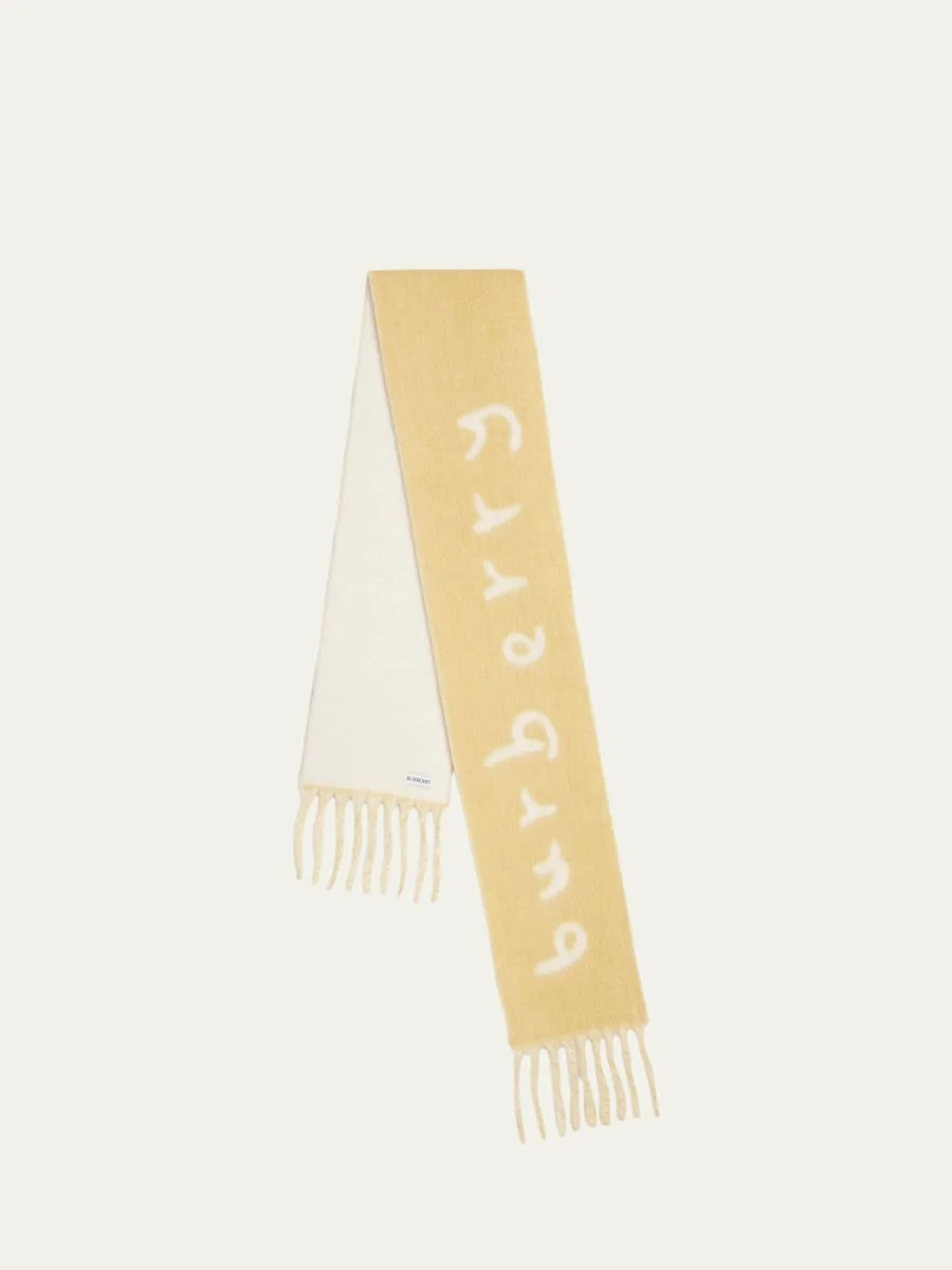 Jacquardwoven with Burberry lettering, this reversible woolblend scarf is finished with chunky twisted fringing. Approx. 73"L x 8"W May be styled in multiple ways Alpaca wool/nylon Professional cleaning recommended Made in Italy