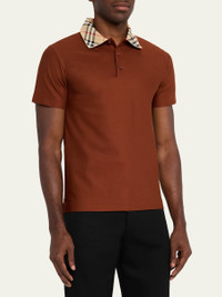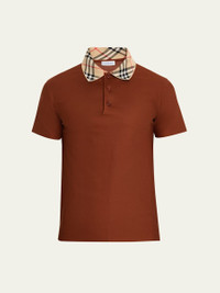 Men's Check-Collar Slim Fit Cotton Polo Shirt