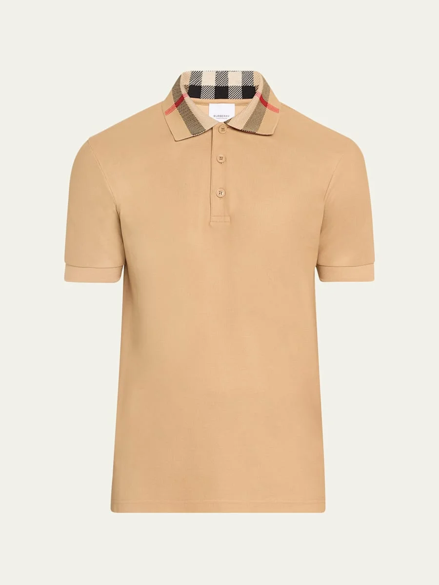 Burberry "Cody" polo shirt with signature check collar Three-button placket Cuffed short sleeves Relaxed fit Cotton Made in Portugal Model is 6'1"/185cm. Online Inquiries: BGS21_NC7RW| Store Inquiries: #4825871