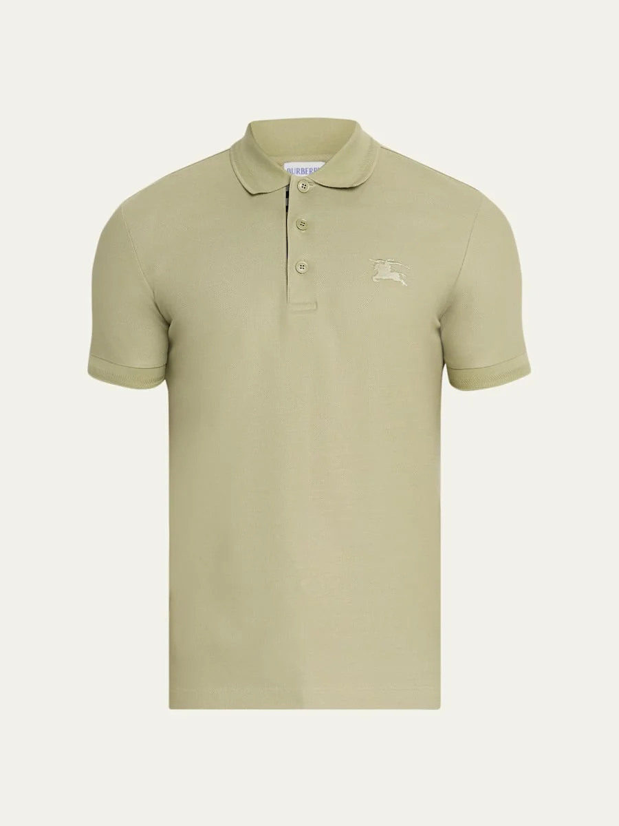 This Burberry polo shirt is crafted from cotton pique and embroidered with the signature tonal Equestrian Knight Design. Ribbed collar Burberry Check threebutton placket Ribbed cuffs Stepped hem Embroidered Equestrian Knight Design on the chest Slim fit Cotton Machine wash cold Imported