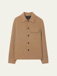 Burberry overshirt made from double-faced wool twill, showcasing lining and undercollar woven with the signature Check Metal Equestrian Knight Design motif on the chest pocket Shirt collar Button front Chest flap pocket Single-button cuffs Classic fit Wool Made in Italy Online Inquiries: BGS21_NDTHT| Store Inquiries: #5082719
