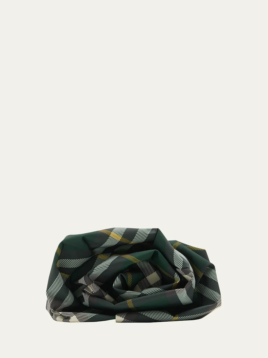 Burberry rose-shaped clutch bag in check nylon and leather Structured top with magnetic closure Lining: Leather Approx. 5.5"H x 10.6"W x 6.3"D Made in Italy Online Inquiries: BGS21_V64TG| Store Inquiries: #4718989