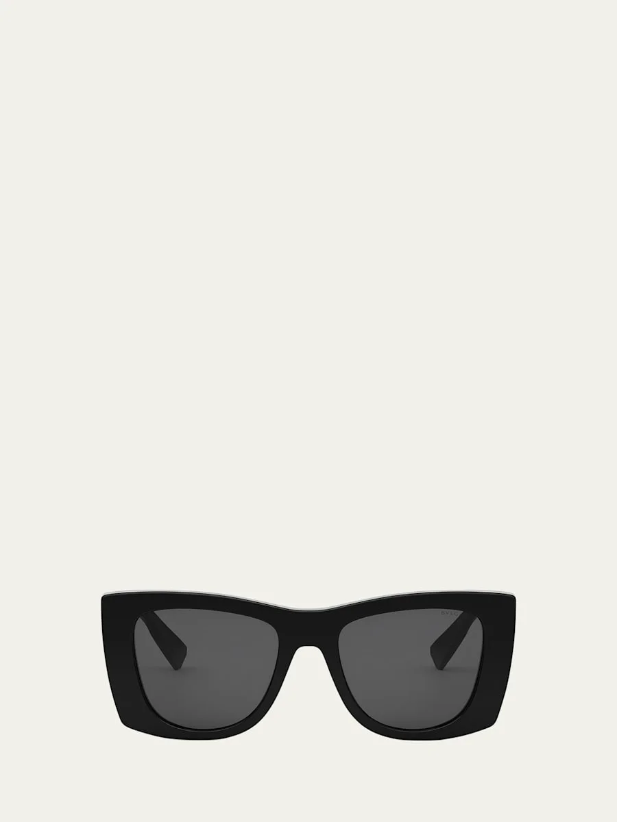 BVLGARI "Roma" butterfly sunglasses in acetate and nylon Lasered logo on temples metal plaque and lasered logo on lens Lens/bridge/temple (in mm): 52-19-145 Solid-color lenses Wide, tapered arms 100% UVA/UVB protection Made in Italy Proposition 65 warning for California residents This product contains perfluoroalkyl and polyfluoroalkyl substances (PFAS). For more information, please visit the manufacturer’s website. Online Inquiries: BGS21_D518V| Store Inquiries: #4879810