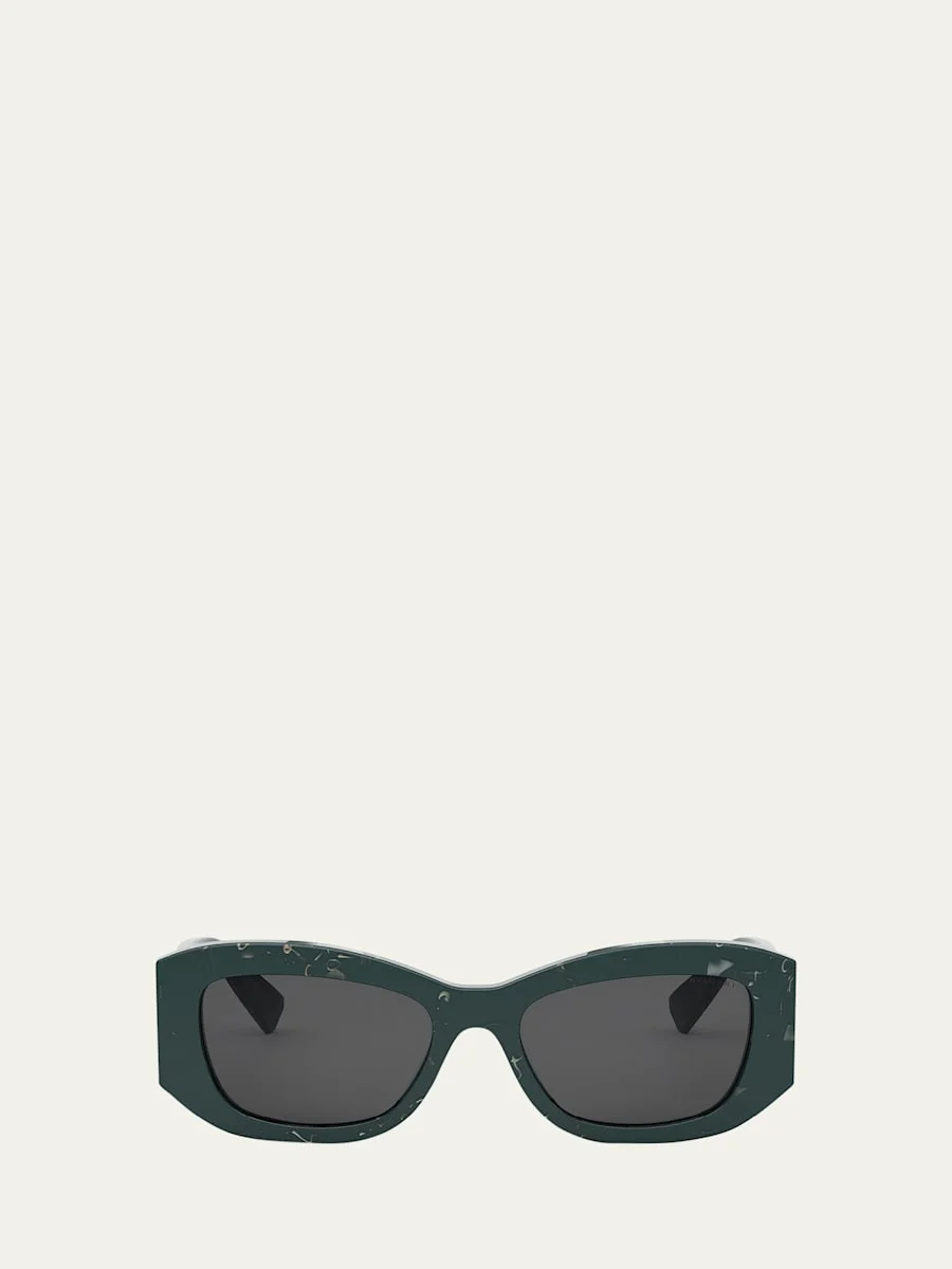 BVLGARI "Roma" rectangle sunglasses in acetate and nylon with lasered logo metal plaque Lens/bridge/temple (in mm): 54-18-145 Solid lenses Logo on left lens Saddle nose bridge Wide, tapered arms 100% UVA/UVB protection Made in Italy Proposition 65 warning for California residents This product contains perfluoroalkyl and polyfluoroalkyl substances (PFAS). For more information, please visit the manufacturer’s website. Online Inquiries: BGS21_D5193| Store Inquiries: #4879818
