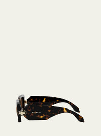 BVLGARI sunglasses in acetate Under-lacquer metal logo outside on both temples Eye/bridge/temple (in mm): 37-19-140 Eyewear style: Rectangle Acetate 100% UVA/UVB protection Made in Italy Proposition 65 warning for California residents Online Inquiries: BGS21_D5529| Store Inquiries: #4972559