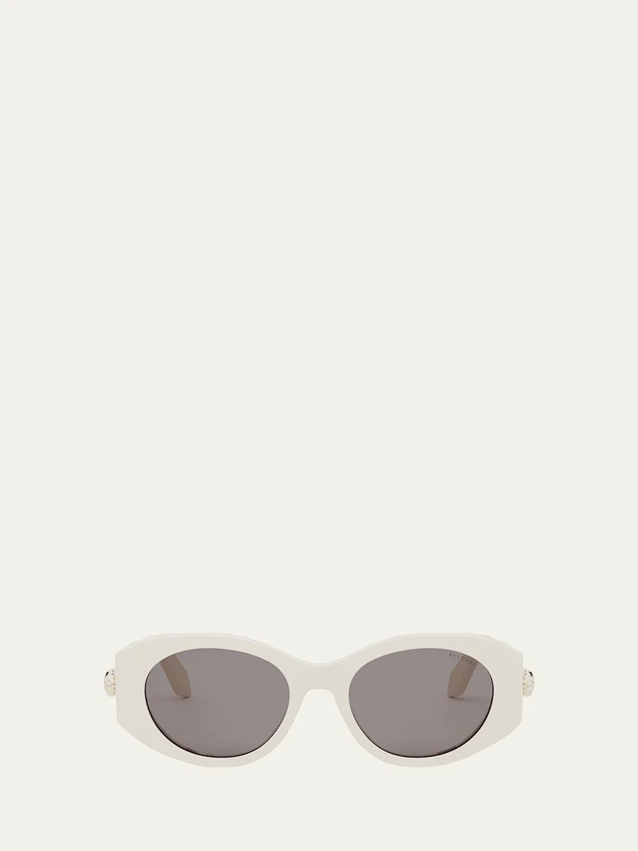 BVLGARI "BV40007IW" oval sunglasses in acetate, metal, and nylon/polyamide Iconic snake head positioned on shorter temples with an eye-catching front shape Lens/bridge/temple (in mm): 63-15-140 Saddle nose bridge Logo on temples Wide, tapered arms Hand wash 100% UVA/UVB protection Made in Italy Proposition 65 warning for California residents Online Inquiries: BGS21_D4V0W| Store Inquiries: #4720622