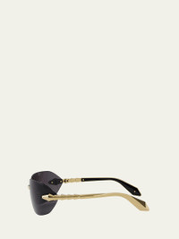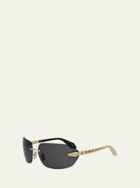 BVLGARI "Serpenti Viper" rimless wrap sunglasses in metal Lens/bridge/temple (in mm): 73-15-1115 Adjustable nose pads Snakehead on hinges Thin, tapered arms Hand wash 100% UVA/UVB protection Made in Italy Proposition 65 warning for California residents Online Inquiries: BGS21_D4XWZ| Store Inquiries: #4806996