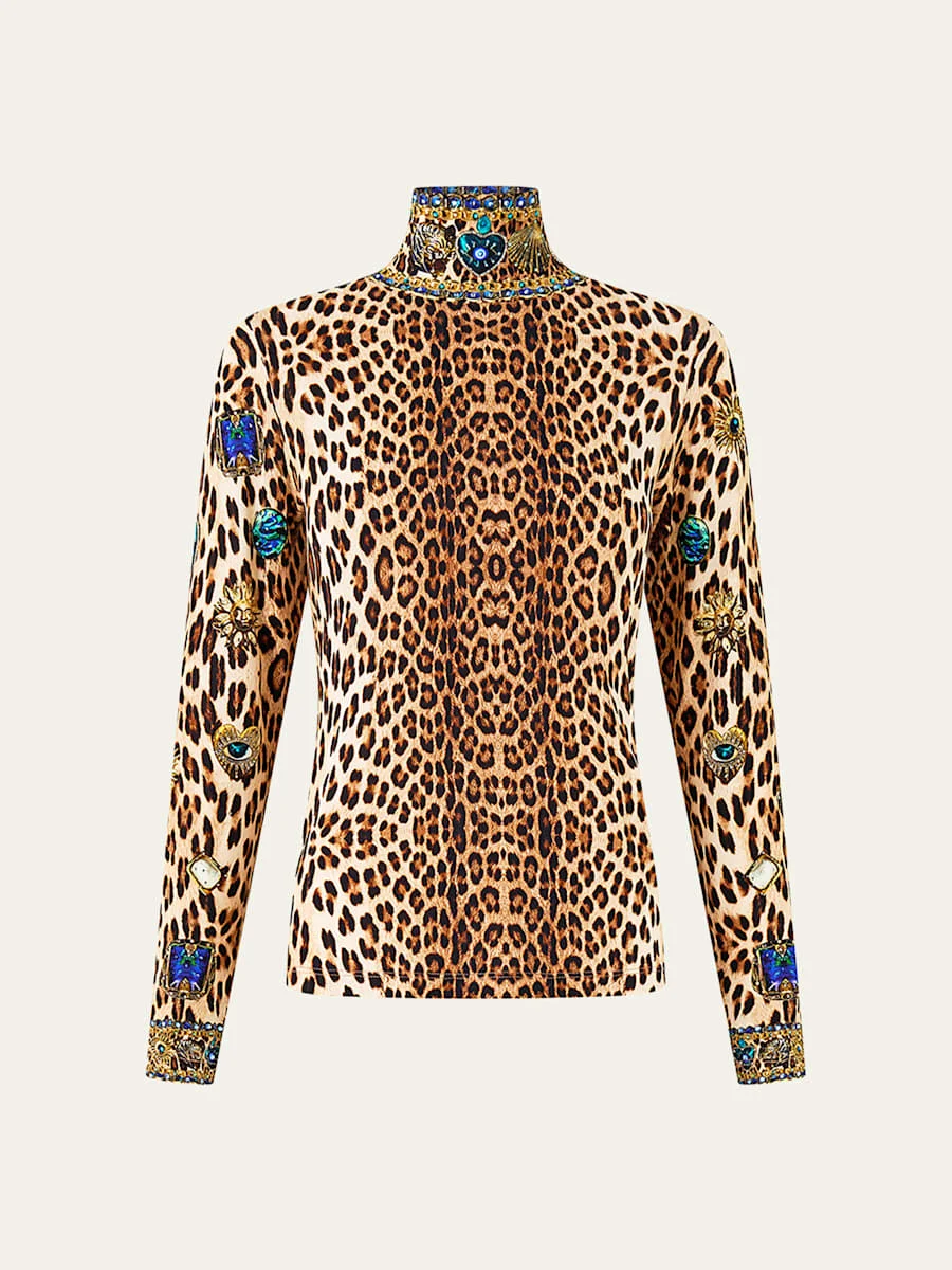 Handcrafted from stretch jersey, this top by Camilla is illustrated with the label's limitededition Nazar Nirvana animal pattern and crystal embellishments Turtleneck Long sleeves Slim fit Hip length Pullover style Modal/spandex Dry clean Imported