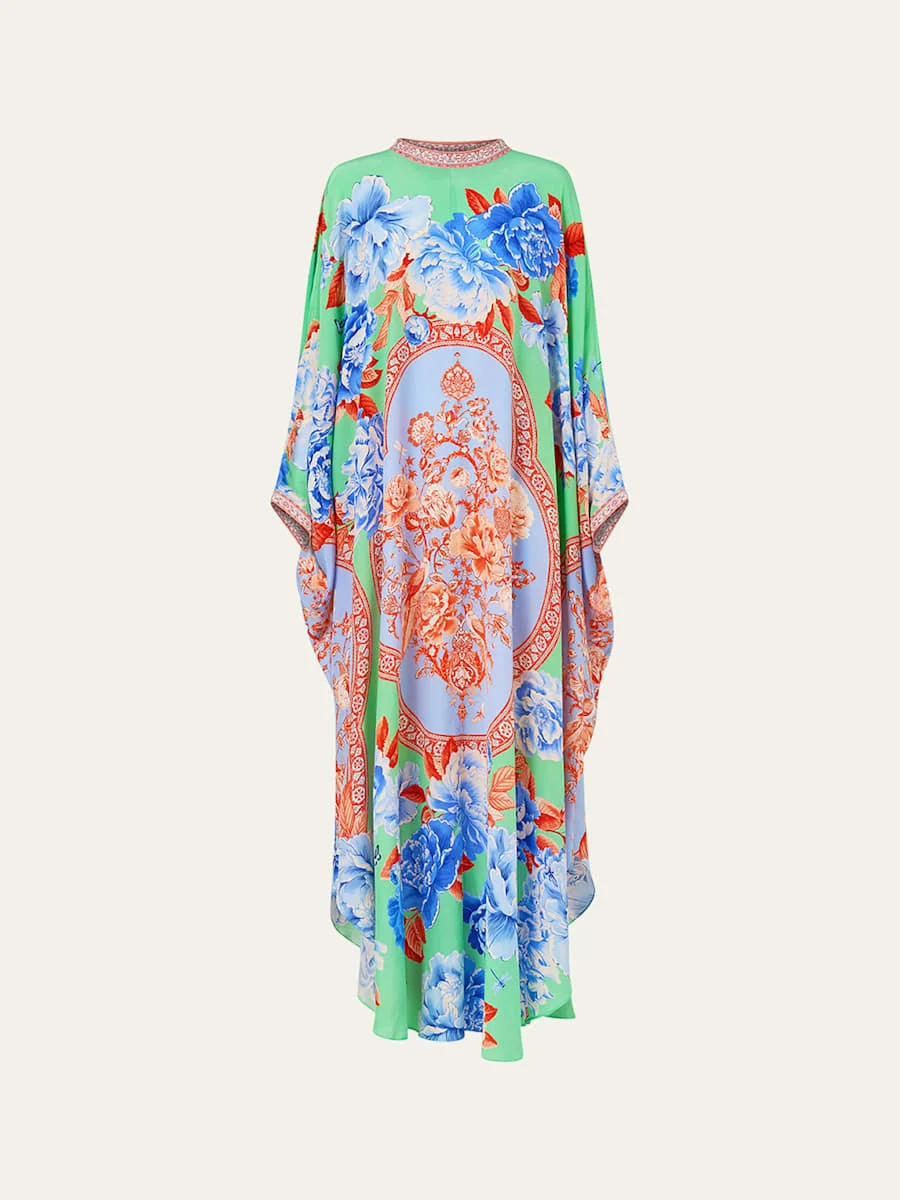 Handcrafted from lustrous silk, this kaftan by Camilla is patterned with an exclusive limitededition Topkapi Pop print and finished with crystal embellishments Structured high neckline; selfties behind the neck Relaxed long sleeves Relaxed fit Full length Slipover style Silk Imported