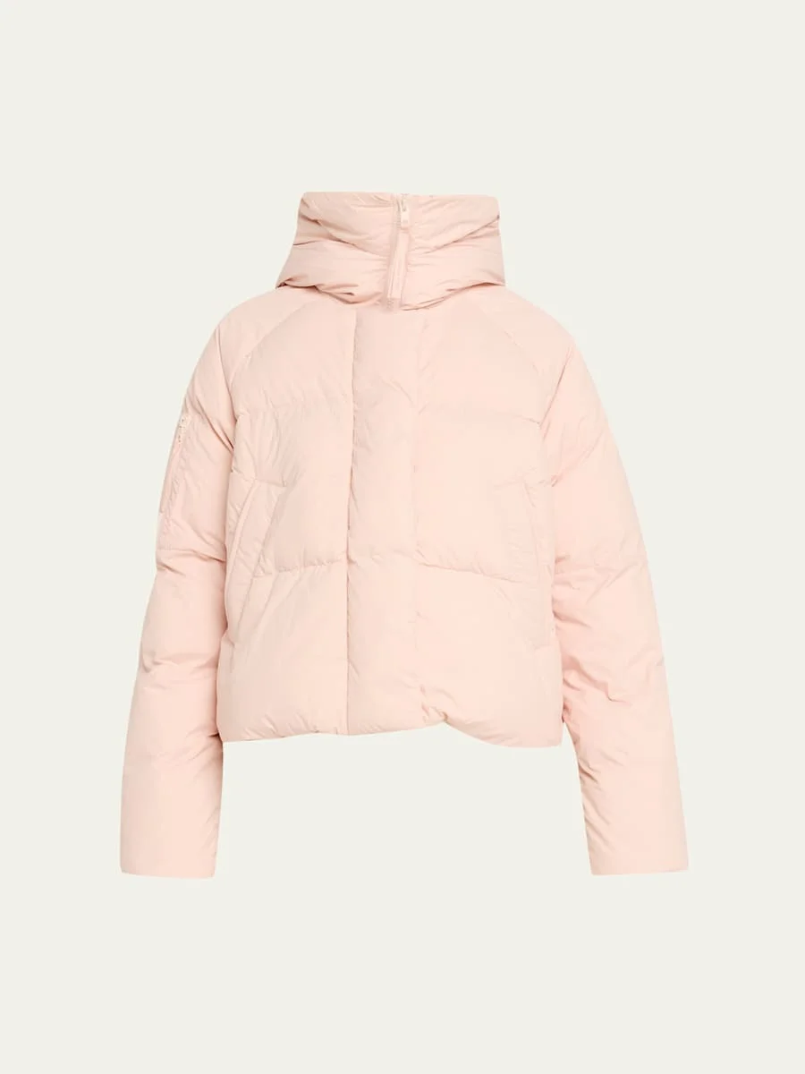 Modernized with a bubble silhouette, the "Chilliwack" puffer jacket by Canada Goose is crafted from Recycled EnduraLuxe with a matte finish that keeps you warm and offers waterrepellent protection. Cold weather protection down to 5°F Interior backpack straps for handsfree carrying Adjustable hooded neckline Long sleeves with ribknit cuffs Signature logo patch on the left sleeve Side zip pockets; zip sleeve pocket Relaxed fit Drawcord hem Twoway zipfront with snap placket Nylon/polyamide Fill: Down/feather Lining: Nylon Machine wash cold, inside out Made in Canada