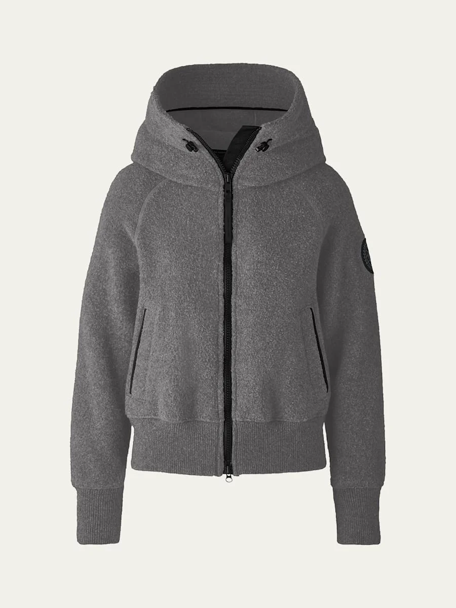 Crafted from breathable Kind Fleece, the "Chilliwack" bomber jacket by Canada Goose provides warmth and comfort with a soft handfeel. Adjustable hooded neckline; twoway zipfront Long sleeves with ribbed cuffs Siganture logo patch on the left sleeve Side pockets Classic fit Ribbed hem Wool/lyocell/polyester Dry clean Made in Canada