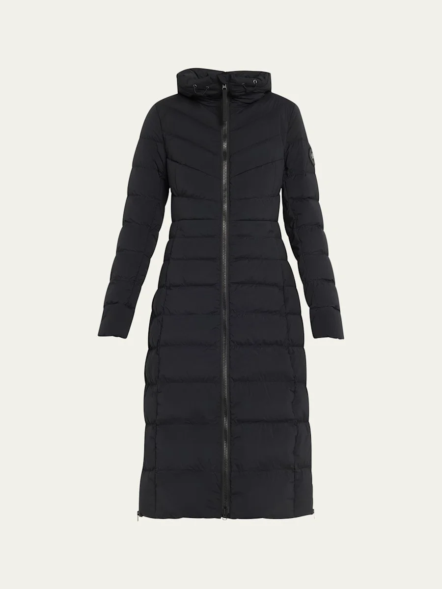 Canada Goose "Clair" long puffer coat features a fixed snorkel hood with a hidden cord lock adjuster Two-way center front zipper Suede tricot chin guard Long sleeves; power stretch cuffs Interior backpack straps 2 exterior pockets: fleece-lined hand warmer pockets with zipper closure,1 interior pocket: security pocket with zipper closure Two zipper back vents Full length Relaxed fit Nylon/polyamide/spandex Lining: Nylon/spandex Feather/Down fill Machine wash cold Made in Canada Model is 5'10"/177cm. Online Inquiries: BGS21_T54TK| Store Inquiries: #4635134