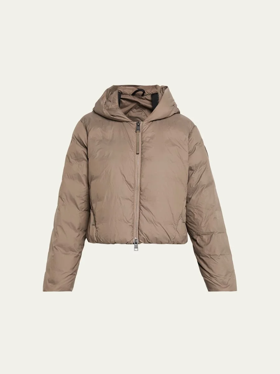 Designed with a minimalist silhouette in ultra-lightweight Lumina, the "Elba" puffer jacket by Canada Goose offers ease without compromising warmth. Cold weather protection down to 5°F. Packable into left interior pocket with carrying strap. Hooded neckline; two-way zip-front Long sleeves Signature logo patch on the left sleeve Side zip pockets Classic fit Elasticized drawcord hem Nylon/polyamide Fill: Feather/down Lining: Nylon Machine wash cold inside out Imported Online Inquiries: BGS21_T6YAL| Store Inquiries: #5065447